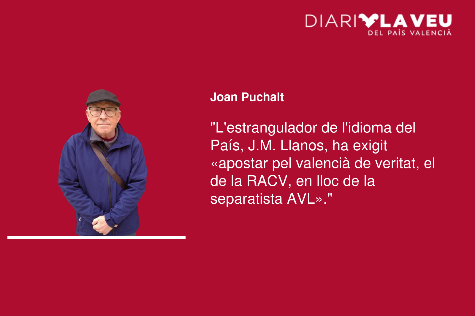 És a dir, l’excel·lentíssim senyor, com es feia dir, en Francisco Franco, jagut al cementeri del poble de Mingorrubio, va ser cabdill d’Espanya per la gràcia de Déu, o, perquè en aquell moment Déu i la seua Església catòlica, apostòlica i romana, com tots sabem, feia el que li donava la gana. Llavors un escolà d’amén com el president de la Generalitat, Juan Francisco Pérez Llorca, el qual tracta amb els seus amics de Vox per a consensuar amb l’estrangulador de l’idioma del País, José María Llanos Pitarch, qui ha exigit “apostar pel valencià de veritat, el de la RACV, la Reial Acadèmia de Cultura Valenciana, en lloc de la separatista AVL, que no té solució, ja que ha cedit les seues competències a un institut forà que s’extralimita en les seues atribucions i vulnera la seua pròpia llei de creació”.