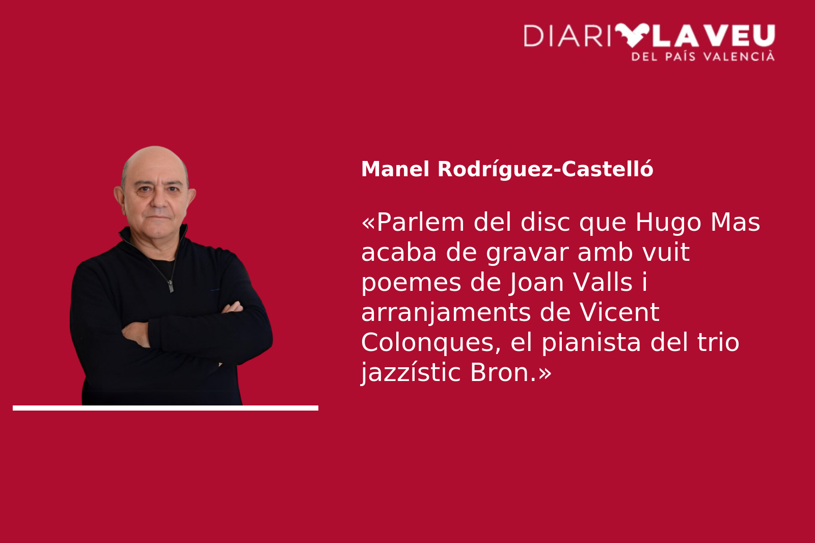 Però parlàvem de Valls, el disc que Hugo Mas acaba de gravar amb vuit poemes musicats i cantats per ell mateix del seu paisà, el poeta Joan Valls i Jordà (1917-1989), amb arranjaments de Vicent Colonques, el pianista del trio jazzístic Bron que completen Tico Porcar a la bateria i Matt Baker al baríton i al contrabaix. Projecte llargament covat, el resultat musical és fidel als principis acústics de l’autor i a les seues demostrades aptituds vocals i interpretatives, però alhora s’adapta bé a les característiques de la banda que l’acompanya i a la naturalesa poètica dels textos de Valls. L’integren, ja ho hem dit, vuit peces que pertanyen a dos dels llibres més importants del poeta, Anys i paranys (1985) i Quadern vermell (1986), que juntament amb el pòstum La rosa quotidiana (1990) constitueixen el genuí testament poètic del “millor poeta del carrer del Carme”, com irònicament li agradava definir-se. Amb el nou disc, que ve precedit pels àlbums Hugo Mas (2010), Wegener (amb els Arthur Caravan, 2014), Pentàpolis (2015) i Ethiopiques / Bum Bum Bum (2017), Hugo Mas traça una línia de continuïtat amb els seus paisans Francesc Moisés i Jordi Gil, que en els anys vuitanta i noranta van musicar poemes de Joan Valls, i obri alhora la seua poesia cap a nous universos sonors. En boca de l’Hugo els poemes comencen sent xiuxiuejats més que recitats, zelosos de l’espai d’intimitat que la poesia sembla reclamar com una confessió a cau d’orella per acabar, en un in crescendo molt de la casa, cantats gairebé a crits, empesos pel vendaval de la veu poderosa de l’intèrpret. Per bé que el treball respon –com no podia ser altrament– a una lectura molt personal del món de Valls, la delicadesa i respecte amb què Hugo els ha tractats transmeten bé l’esperit poètic, ple d’ofici, maduresa i sensibilitat social, de l’autor d’Alcoi. Amb el nou lliurament Hugo Mas no solament fa un decidit pas avant en la seua trajectòria artística sinó que contribueix de manera magnífica al coneixement d’un dels poetes més importants de la lírica catalana de tots els temps, encara avui tristament relegat a la zona de penombra a què la ignorància, la gasiveria i l’obsessiu monocultiu cultural valencià condemnen algunes veus autèntiques molt valuoses. És hora d’obrir la finestra i respirar l’aire nou de Valls.