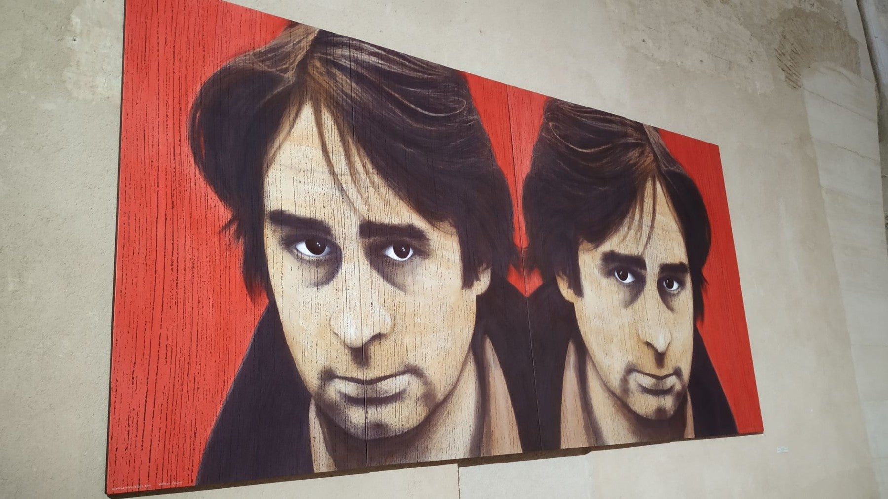 Així, la cabdetana Mercè Díaz, ens ofereix una composició de poesia visual, un mural amb el títol de «Germinal», cercant els orígens. I per copsar els principis musicals d’Ovidi Montllor en el món de la cançó, cal que parlem de la mítica Cova del Drac, un conegut local musical barceloní, una mena de centre cultural. Allí, com ens recorda Miquel Pujadó, «seduït per Pi de la Serra i Guillem d’Efak, aprèn alguns acords de guitarra i escriu les seues primeres cançons, entre elles la molts anys prohibida La samarreta». I precisament aquesta és la cançó que inspira al seu amic Antoni Miróa pintar «Cortina vermella»(«Jo soc fill de família molt humil,/tan humil que d’una cortina vella/una samarreta em feren. Vermella». La samarreta). Una altra de les primeres cançons que escrigué, concretament l’any 1967, motivà Lluïsa Pérez a pintar-nos un collage, el díptic «El seu poble i les seues vacances» (El meu poble:/Alcoi./Poble d’història d’homes/que han volgut llibertat». Alcoi). I també Carme Jorques escull la ciutat dels ponts per fer la seua obra. Així amb «Alcoi, tan lluny del meu esguard, tan capbussat dins meu» ens pinta un políptic, ciment sobre taula, («Allí fa néixer boira/el fum brut sense ales,/que «ximeneres» trauen,/en prova de treball,/d’un poble que l’ofeguen». Alcoi).
