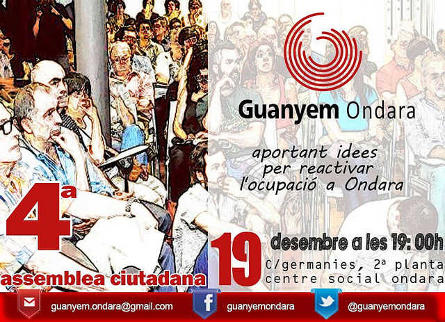 Per tant volem convidar a tota la gent d’Ondara a que acudesquin a la pròxima assemblea el divendres 19 a les 19:00 al centre social.