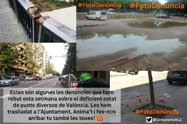 Compromís anima els ciutadans a enviar les seues instantànies fetes amb dispositius mòbils amb el hashtag #FotoDenúncia sobre diversos punts de la ciutat que necessiten manteniment perquè estan abandonats per part de l’equip de govern de la senyora Rita Barberá.