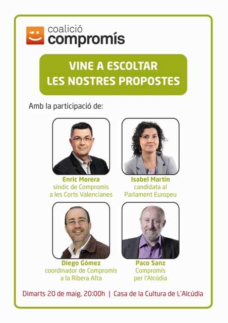 Hui dimarts tindrà lloc a l’Alcúdia un acte de Compromís sobre les eleccions europees.