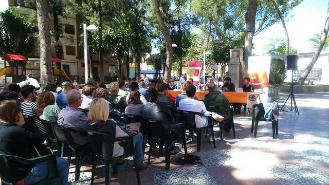 Seguidament, la ponència va començar amb puntualitat. Presentada per Eric Beltran, company del Col•lectiu jove de Compromís per Alberic, i tenint com a fons el monument al poeta alberiqueny Francesc Badenes i Dalmau. Així les coses, i amb una platea repleta de gent, tant asseguda com de peu, se’ns va presentar a Vicent Baydal, doctor en història medieval, professor del Departament de Dret de la Universitat Pompeu Fabra i autor del llibre “Els valencians, des de quan són valencians?”; Antoni Royo, representant d’Acció Cultural del País Valencià; Manuel Carceller representant de Plataforma per la Llengua al País Valencià; i Dolors Pérez, senadora per València de Compromís.