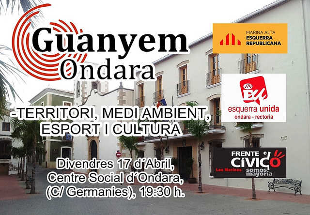 -La propera assemblea, si no hi ha res urgent, serà el divendres 17/04/15 a les 19.30h, al Centre Social d’Ondara, C/Germanies. La temàtica de l’assemblea per a aportar propostes serà:
