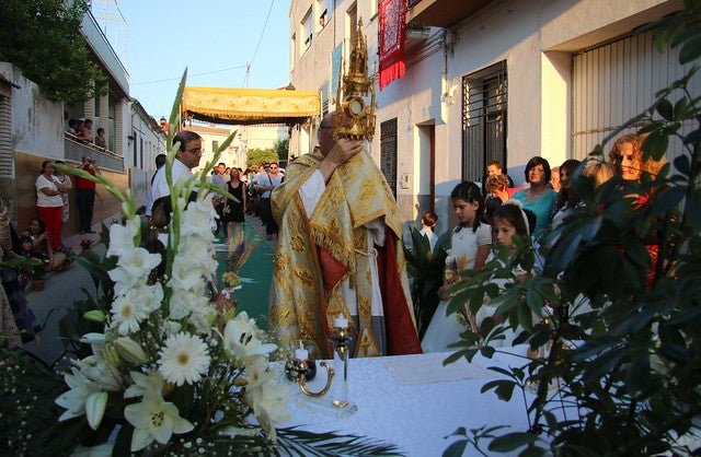 Les catifes florals i els mantons brodats han sigut els protagonistes de la celebració del Corpus a Benilloba, que aquest diumenge s’ha celebrat amb la tradicional processó pels principals carrers de la localitat i que ha sigut seguida per una gran quantitat de persones.