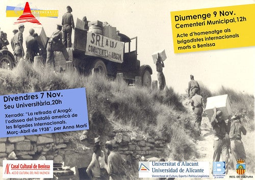 Aquest diumenge les dones i els homes de Compromís recordarem de nou als Brigadistes Internacionals soterrats al cementeri municipal de Benissa que van morir al nostre poble, joves antifeixistes vinguts de Polònia, Itàlia, Iugoslàvia i França. Com cada any – enguany es compleixen les IX setmanes d’homenatge que organitza el Casal Cultural de Benissa – estarem recordant i homenatjant a aquestos lluitadors antifeixistes que van vindre a defensar les llibertats, la democràcia i la voluntat popular de la major part de la societat d’aquest país en aquells anys. Enguany, a més, estarem acompanyats pels diputats de Compromís a les Corts, Mireia Mollà i Fran Ferri.