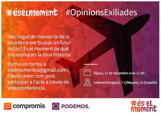 Compromís-Podem convoca “opinions exiliades” per donar veu als castellonencs emigrats per la falta d’oportunitats