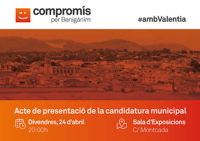 La candidatura “Compromís per Benigànim” es va formalitzar de forma definitiva aquest passat divendres davant la Junta Electoral de Xàtiva. Aquesta presència electoral és el resultat de gairebé un any de treball continu a través de diferents assemblees obertes a les quals han pogut assistir tots els veïns i veïnes de la població.