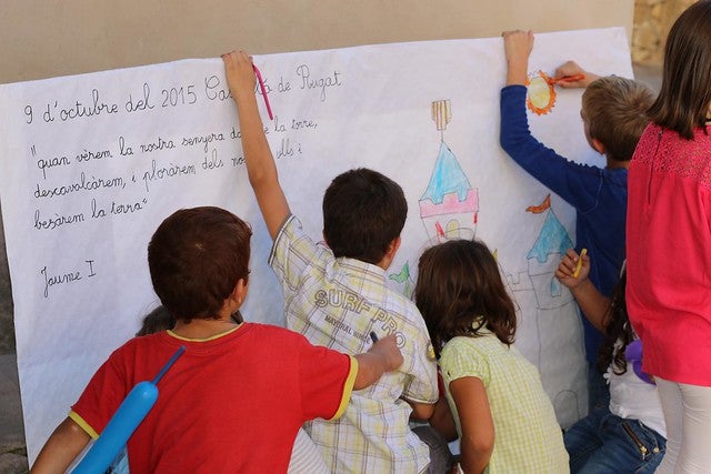 La vesprada va transcórrer plena de color i alegria, amb les diverses activitats: pintura de corones de Jaume I, espases de globus, fotografia amb Jaume I, pintura de cares, etc. La nota final als tallers la va posar el taller ‘Tambors de Jaume I’ on els xiquets, amb la col·laboració de l’associació local Revelasao Batucada, posarien la música a la cercavila que acabaria a la simbòlica intersecció entre el carrer 9 d’octubre i Jaume I.