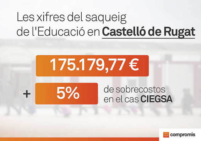 El cas CIEGSA –l’empresa que es va crear per adjudicar la construcció d’infraestructures educatives i que va servir per a un desviament sistemàtic de diners, segons s’està investigant en els Tribunals- s’està demostrant com un dels casos de corrupció i saqueig més greus que hem patit en la nostra terra. Segons un informe de la Intervenció de la Generalitat, les obres varen acabar tenint uns sobrecostos d’un 36% més; és a dir, més de mil milions d’euros que es varen balafiar de manera irresponsable i que, en la major part dels casos, tenien una finalitat de comissió que apunta, presumptament, al finançament il·legal del Partit Popular.