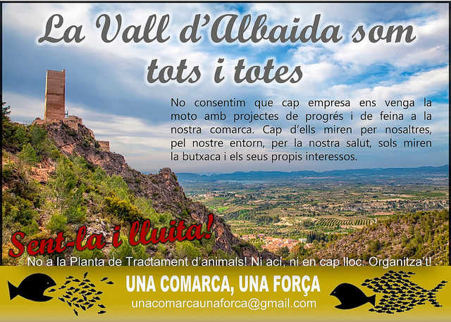 Compromís per Ontinyent subscriu el manifest que l’Assemblea Veïnal contra la Planta de Residus Animals va tornar a presentar públicament a la manifestació del passat diumenge 10 de gener de 2016 a la CV-60, entre Otos i la Pobla del Duc. Com senyala el mateix manifest “l’oposició a aquest projecte per part del veïnat de la Vall ha sigut ferma i majoritària. En el seu moment es van presentar prop de 3.000 al·legacions i es van recollir més de 4.000 signatures contra la instal·lació”.