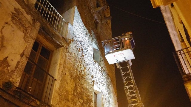 Este dissabte sobre les huit de la nit la policia i els bombers van haver d’intervindre després que des de la torre medieval caigueren elements de la façana al carrer. Segons hem pogut comprovar alguns d’estos cascots caigueren a escassos centímetres d’uns veïns amb fills xicotets que en eixe moment passaven per baix de l’edifici.