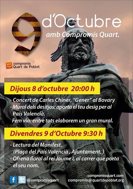 Per dinamitzar aquests actes, farem servir l’etiqueta #nouoctubrequart, per a compartir en xarxes socials.