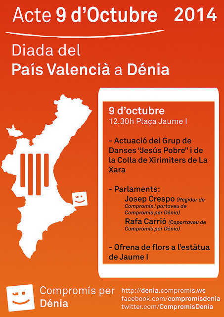 Compromís per Dénia celebrarà la setmana pròxima la tradicional diada del 9 d’Octubre amb un acte a la plaça Jaume I de Dénia, tal i com ha estat habitual en els últims anys.