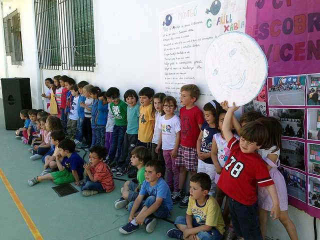 I per ha acabar el projecte, tota l’ escola es va reunir al pati una vesprada i vam organitzar un RECITAL POÈTIC des d’infantil de 3 anys fins a sisé vam viure una vesprada amarada dels poemes d’aquest poeta del poble. Una alumna i un alumne de 6é van ser els encarregats de preparar el guió, introduir-nos en la biografia d’ Estellés i fer de mantenidors de l’acte. Tot un èxit!.