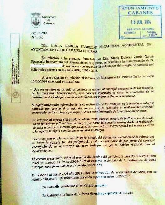 A pesar d’això, són constants les queixes veïnals de camins que són arreglats constantment i d’altres que són completament oblidats, sense que hi haja un criteri objectiu d’ús , mal estat, o necessitats reals d’actuar en cada camí. El sector agrícola continua sent un dels motors de l’economia del municipi, a més de ser vital tindre la xarxa de camins en bones condicions tant per accedir a vivendes disseminades, actuació front incendis i accidents, o per potenciar el turisme verd i alternatiu.