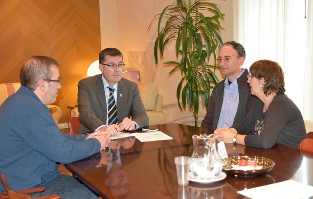 El president de les Corts Valencianes, Enric Morera, s’ha reunit amb els investigadors del Centre de Estudis Mediambientals de la Mediterrània (CEAM) Mª José Estrela, Jose Antonio Valiente i Francisco Pastor guanyadors del Premi Internacional de Meteorologia Eduard Fontseré que atorga l’Associació Catalana de Meteorologia.