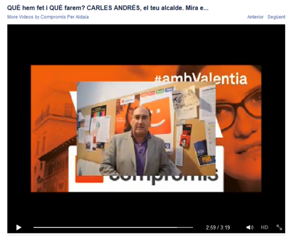 I, tal i com afirma al vídeo, manifesta que “Heu de saber que Compromís ha estat realment durant l’última legislatura l’autèntica oposició. Hem sigut una oposició dura, hem sigut una oposició combativa, però sempre respectuosa amb la institució i amb els altres partits. (…)