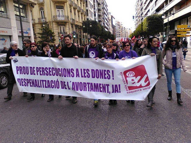 La manifestació que va transcórrer pels carrers de València en un ambient pacífic i festiu, on totes i tots reclamaven consignes en favor de la no discriminació per raó de sexe i orientació sexual, de l’educació i coeducació en drets i valors com la igualtat, en el dret a decidir sobre la maternitat, en rebuig de la criminalitazació que pateixen les dones que exerceixen la prostitució, de la discriminació de les dones amb diversitat funcional física, psíquica o sensorial, i exigència del dret de les dones a una vida lliure de violències masclistes en cap dels seus àmbits i formes.