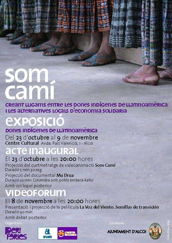Aquest dimecres dia 23 tindrà lloc a les 20 hores en el Centre Cultural la inauguració de la exposició amb la projecció del curtmetratge de videoanimació Som Camí i del documental Mu Drua, que presenta la situació el poble emberá-katio. A més, en aquest marc, el pròxim 8 de novembre es presentarà i projectarà la pel·lícula La voz del viento. Semillas de transición, amb un posterior debat entre els assistents i el director de la mateixa. Aquesta pel·lícula tracta la qüestió de la sobirania alimentària.