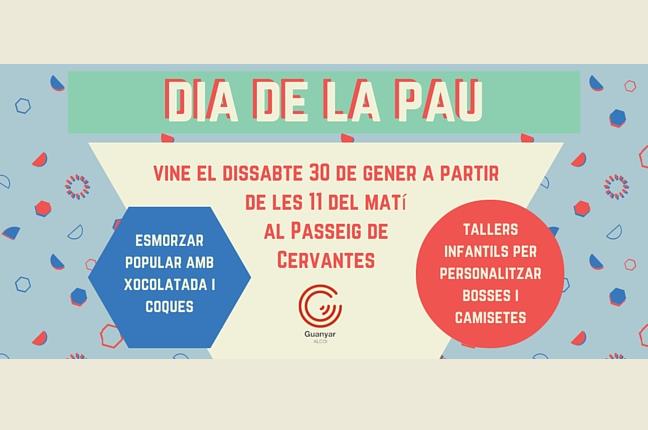 Volem celebrar el Dia escolar de la Pau i la No-Violència i passar una bona estona amb tots aquells que ens vulguen acompanyar. Com que se celebra el Dia escolar de la Pau, hem organitzat uns tallers infantils d’estampació per a xiquetes i xiquets en els quals puguen personalitzar borses i samarretes. El taller és totalment lliure!