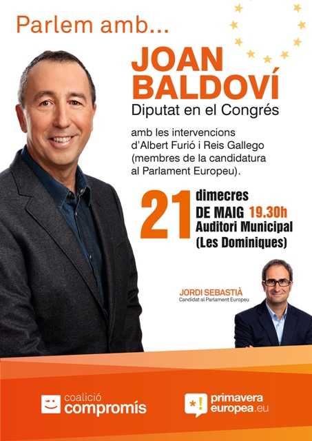 Comptarem amb la presència del diputat Joan Baldoví i dels membres de la la llista de Compromís al Parlament Europeu: Reis Gallego i Albert Furió.