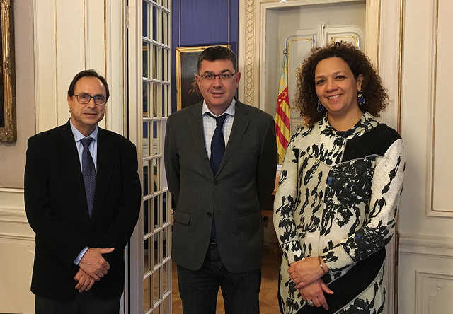 Ambdós consellers han estat rebuts al Palau dels Borja pel President del parlament valencià, Enric Morera, qui ha mostrat les instal·lacions i ha explicat la història de la seu de la cambra autonòmica valenciana.