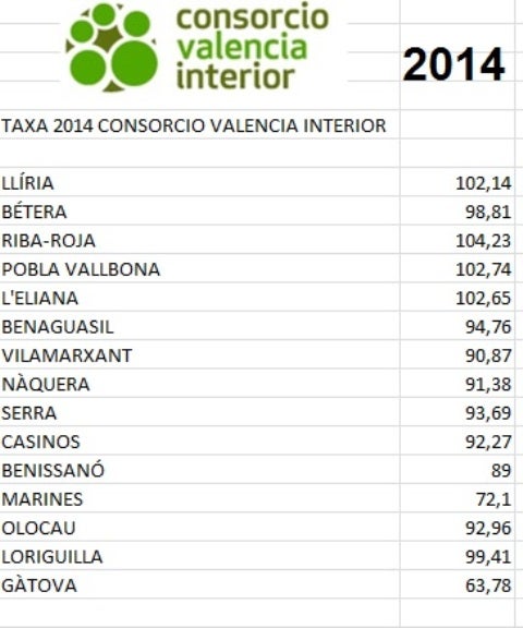 El dia 31 de maig de 2014, junt una setmana després de les Eleccions Europees, el Consorcio Valencia Interior publica en el Butlletí Oficial de la Província l’anunci on es comunica a tots els usuaris el període de pagament voluntari de la taxa de reciclatge corresponent a 2014.