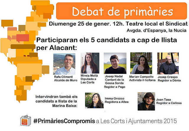 El pròxim diumenge, dia 25 de gener, es farà a la Nucia un debat de les Primàries de Compromís a les Corts Valencianes.