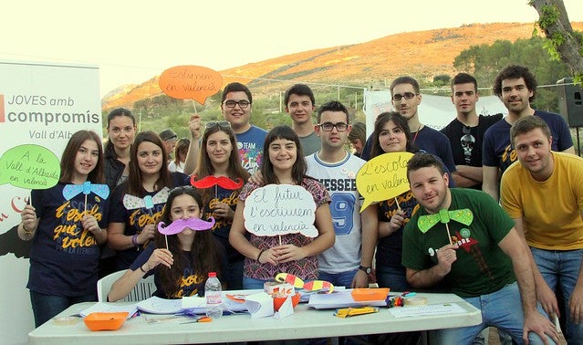 Alguns membres de Joves amb Compromís durant la Trobada d’Escoles en Valencià a Agullent