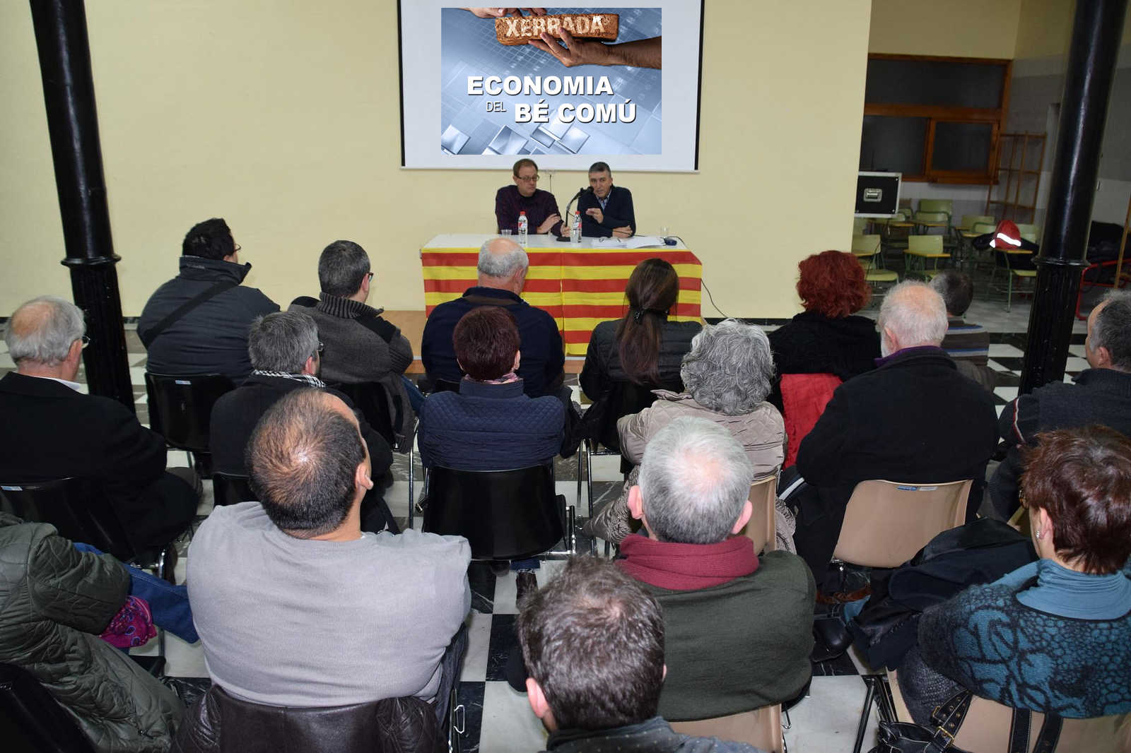El saló d’Actes de l’Obrera de Castelló es va omplir per a escoltar Rafael Climent, alcalde de Muro d’Alcoi de la coalició Compromís, qui va exposar amb to seriós i de forma molt clara i entenedora els principals arguments amb què Christian Felber, teòric del moviment ‘common good’, el bé comú, fonamenta les seues idees, cada volta més ben conegudes i que la població de l’Alcoià liderada per Climent des de fa setze anys i el seu equip ha dut a la pràctica amb un fulminant èxit en tots el àmbits.