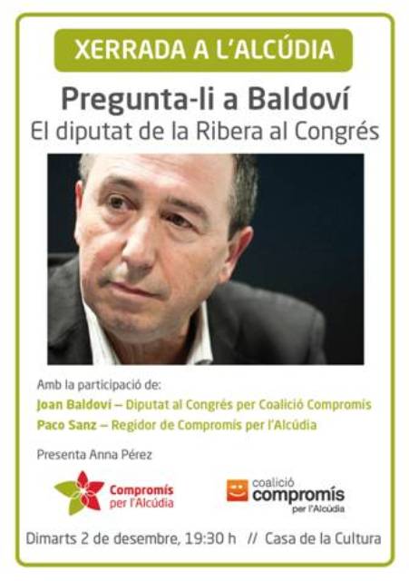 Acte amb Joan Baldoví a l’Alcúdia demà dimarts