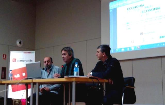 Davant unes quaranta persones, els tres conferenciants han exposat aquest model econòmic que ja funciona en diferents regions d’Alemanya i d’Àustria. En primer lloc, Francisco Álvarez ha situat el model econòmic actual imperant que, segons ha afirmat, es basa a aconseguir el creixement del PIB de cada país, sense tindre en compte si les fórmules per a créixer contenen injustícies socials, i també en la supremacia del sistema financer per damunt de tots els altres àmbits de la vida.