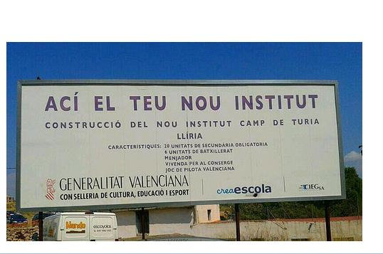 Segons el Diputat de Compromís, Paco Garcia Latorre, entre la construcció de nous centres educatius es troba el nou IES Camp de Túria, que se situarà en un solar cedit per l’Ajuntament a la Generalitat al Barri de Mura de Llíria.