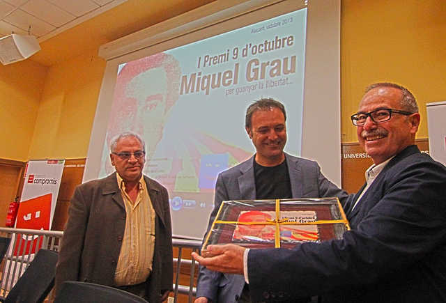 Lliurament del primer Premi Miquel Grau, organitzat per Compromís per Alacant. L’acte va tenir lloc anit a la seu universitària d’Alacant. El premiat va ser el periodista Pere Miquel Campos, per la seua defensa dels valors democràtics.