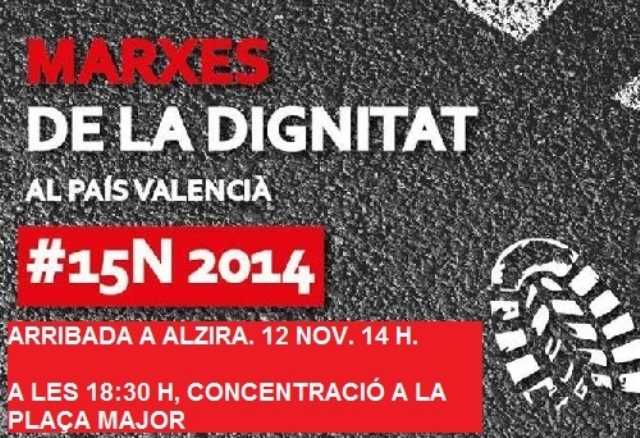 La Marxa de la Dignitat tindrà un dels seus punts de trobada en la capital de la Ribera el dia 12, i serà rebuda per sindicats de classe, moviments socials i formacions progressistes. Així mateix, totes aquestes entitats fem una crida a tota la ciutadania per manifestar-se i donar el seu suport a aquesta protesta en contra de les polítiques de retallades que atempten contra els drets i la dignitat de les persones dutes a terme per Brussel·les, Madrid o la Generalitat Valenciana.