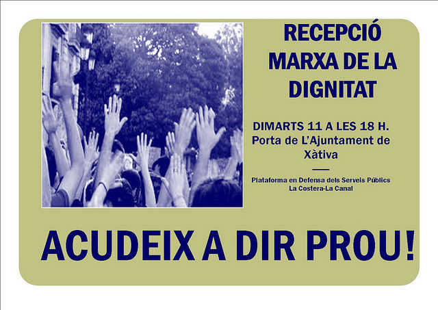 La Plataforma vol rebre’ls quan passen per Xàtiva. Vol donar-los suport i mostrar solidaritat. Que no se senten sols, perquè no ho estan ja que molta gent està amb ells i exigeix les seues reivindicacions.