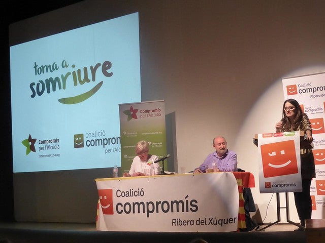 L’acte va ser presentar per Pilar Huertas, una de les persones que encapçalaran la llista electoral de Compromís per l’Alcúdia, que va dir que vivim en un país en el que s’ha instal·lat la decepció, el malestar i la tristor a causa de la pèrdua de qualitat de la nostra vida. En aquest sentit va afirmar que era el moment del canvi i que amb Compromís tornaria el somriure.