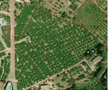 Foto aèria de la parcel·la expropiada, on s’aprecia clarament l’ús agrícola de la mateixa.