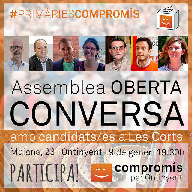 Divendres 9 de gener de 2015 a les 19:30 a la seu de Compromís per Ontinyent es celebra un acte electoral de primàries a les Corts Valencianes