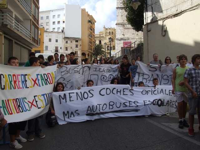 Compromís per Ontinyent té encara molt present les mobilitzacions en demanda del transport escolar que els alumnes dels instituts de la ciutat van organitzar durant el curs 2012-2013. La Conselleria, en aquell moment amb responsabilitat del Partit Popular, va incloure el servei en les seues retallades al·legant que no complien els 3 quilòmetres “en línia recta” mínims per a tindre beca de transport. L’AMPA de l’IES va presentar una reclamació per aquesta decisió davant del Síndic de Greuges. El Síndic va contestar a favor de mantenir la línia “donada l’excepcionalitat de la situació del centre” però la Conselleria del govern anterior va eliminar el servei.