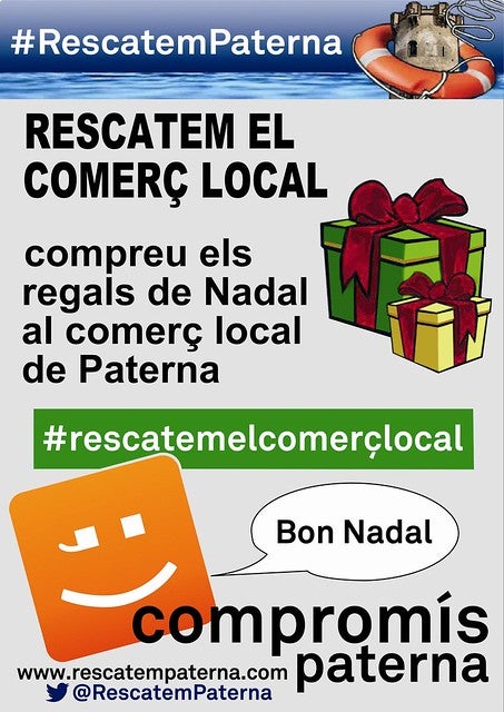 El portaveu municipal de Compromís en Paterna, Juanma Ramón, afirma que “amb l’arribada del mes de desembre tornem amb la campanya ‘Rescatem el Comerç Local’, l’objectiu de la qual és animar a la ciutadania de Paterna a fer les seues compres nadalenques en el xicotet comerç. Una proposta amb la que volem que es fomente el consum responsable al poble. Però el missatge de la campanya és que aquest consum responsable s’ha d’allargar a tot l’any perquè l’economia local necessita del revifament i recuperació del xicotet comerç en qualsevol època de l’any”.