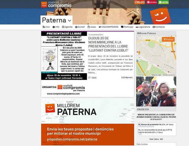 http://propostes.compromis.net/paterna), un espai on ubicarem al mapa del poble les propostes i denúncies que la ciutadania ens faça arribar, amb l’intenció d’anar convertint-les en el nostre programa de les municipals de 2015”.
