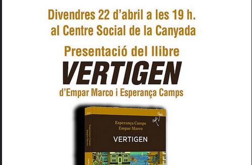 Continuant amb la seua campanya “Paterna és teua” de promoció social i cultura de Paterna, la coalició d’esquerres presenta, el divendres vinent 22 d’abril amb motiu del dia del llibre, l’obra “Vertigen” d’Esperança Camps i Empar Marco. A Vertigen, s’hi barregen diverses trames que ens arrosseguen cap a la caiguda lliure dels seus protagonistes, però també la d’una societat que s’aboca al caire del precipici. Amb una audaç barreja de realitat i ficció, les autores ens endinsen en els temors, les mesquineses i els anhels que conviuen a la convulsa València dels nostres dies, amb el rere fons del tancament de la televisió pública valenciana i l’auge de l’extrema dreta als països del sud d’Europa.