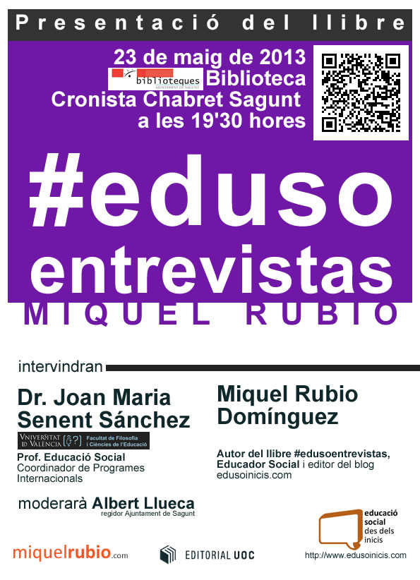 - Miquel Rubio Domínguez, Tècnic Superior en Animació Sociocultural, estudiant d’Educació Social i autor del llibre #Edusoentrevistas.
