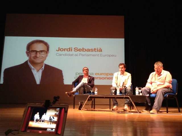 Dimarts dia vint es va celebrar a La Vila Joiosa l’acte central de la campanya electoral que la coalició Primavera Europea està duent a terme per a les eleccions al Parlament europeu del proper dia 25 de maig. Ximo Vaello, secretari de comunicació de Compromís a La Vila Joiosa i Pere Sánchez del col·lectiu d’Alacant van presentar el candidat i cap de llista Jordi Sebastià, actual alcalde de Burjassot. Sebastià, periodista, escriptor i professor universitari, va repassar algunes de les idees-força que la coalició Compromís, ara integrada en Primavera Europea junt a d’altres formacions com ara Chunta Aragonesista o Equo, ha vingut fent en els darrers temps; una col·lecció de les imatges escampades per les xarxes socials de la faena que ha fet la coalició anava repassant els diferents fronts en què s’han batut fins al punt d’esdevenir, al País Valencià si més no, l’única força visible de l’oposició. En un format que intentava eludir el típic míting on es llancen proclames i prou, Jordi Sebastià va recordar el cabal de vots amb què es compta (més de 400.000) de forma que dos eurodiputats es poden obtenir i es pot anar a per un tercer. El cap de llista va comentar les bones sensacions que va rebent dels diferents indrets on fa campanya i va subratllar l’ambient d’il·lusió i faena que s’ha emparat dels membres de la coalició. Recordem que fins ara Compromís no compta amb cap eurodiputat. Es va parlar també de l’economia verda (new green deal) del bé comú, de les infraestructures, com ara el corredor mediterrani, i es va recordar l’aposta dels dos grans partits espanyols per l’eix central, en contra dels interessos dels valencians i en contra de l’opinió majoritària a Europa i del sentit comú; Davant d’uns partits (PPSOE) obsedits a retallar drets en tots els àmbits, Compromís , va dir Jordi Sebastià, fa una aposta per incentivar l’economia des de l’administració. En general es va intentar transmetre un conjunt d’idees més agosarades, més modernes, no agenollades ni resignades als dictats del neoliberalisme i del neoconservadurisme. Acabada la xarrada hi van haver nombroses intervencions del públic, entre el qual hi havia representants de quasi tots els col·lectius dels pobles de La Marina Baixa i Alta.