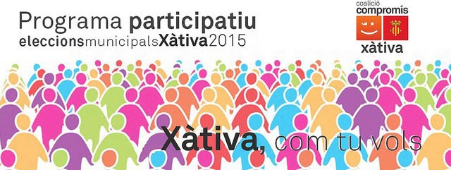 Des de Compromís Xàtiva han donat a conéixer els mecanismes de participació mitjançant els quals s’elaborarà el programa electoral de Compromís per a les eleccions municipals. Per una banda s’han format grups de treball amb diferents persones de dins i fora del col·lectiu de Compromís Xàtiva que estan recollint propostes i incorporant-les al programa, sempre tenint en compte les inquietuds i necessitats de tots els sectors de la societat xativina. Els grups estan distribuïts per diferents àmbits i d’ells formen part persones especialistes que estan aportant idees que s’afegeixen a les propostes que sempre ha defensat Compromís en els diferents programes electorals i les que ha anat proposant al llarg d’aquesta legislatura. Cal destacar que moltes de les propostes que Compromís ha defès en les últimes conteses electorals continuen sent d’actualitat, donat que el govern municipal del PP o bé no ha volgut o bé ha sigut incapaç de portar-les a terme.