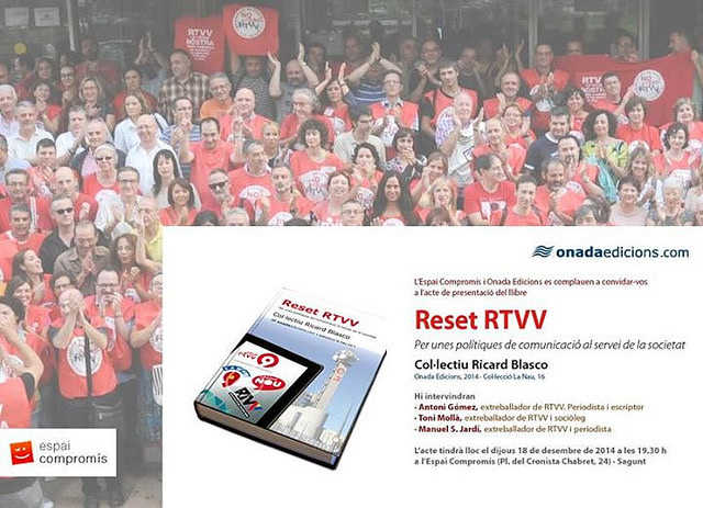 D’aquesta manera, per tal d’oferir les eines necessàries per dissenyar uns nous mitjans públics que eviten el desastre econòmic, mediàtic, social i cultural de l’anterior RTVV, un grup de professionals de la comunicació i la recerca acadèmica han constituït el denominat Col·lectiu Ricard Blasco, en homenatge a aquest pioner de l’estudi de la premsa i l’audiovisual del País Valencià. I una de les primeres accions que duen a terme és la publicació del llibre “Reset RTVV. Per unes polítiques de comunicació al servei de la societat”, editat per Onada Edicions.