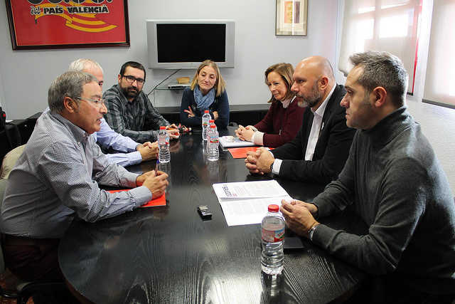 El candidat d’EUPV-UP al Congrés dels Diputats, Ricardo Sixto, la coordinadora d’EUPV, Marga Sanz, i Amadeu Sanchis, membre de la direcció d’EUPV, han mantingut aquest matí una trobada amb representants de CCOO-PV, entre ells, el seu secretari general, Paco Molina, amb motiu de les Eleccions Generals que se celebraran diumenge que ve, 22 de desembre. Ambdues parts han coincidit, en primer lloc, en la necessitat que la ciutadania participe massivament en aquests comicis. “Les Eleccions Generals del diumenge són claus davant el fracàs tant del PP com del PSOE per a aconseguir eixir de la crisi, una crisi que segueix estant i que s’ha demostrat que és sistèmica i que continua afectant als treballadors i treballadores i, per açò, és necessari que hi haja una veu potent de l’esquerra, de la Unitat Popular en el govern Central”, ha comentat Sixto.