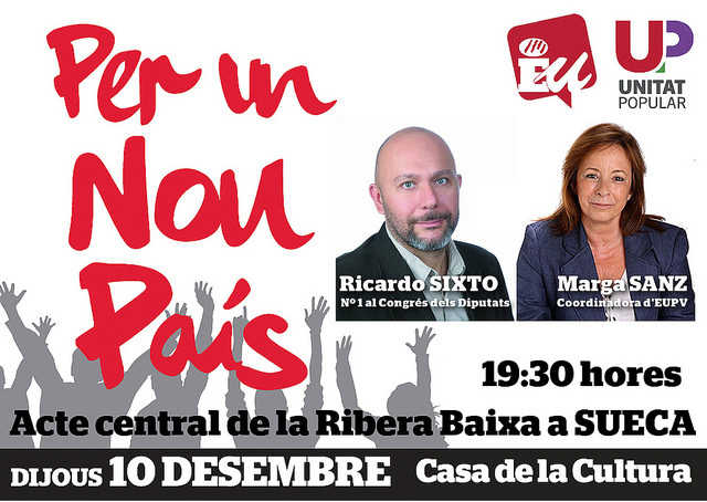 Ricardo Sixto, cap de llista de la candidatura d’Esquerra Unida – Unitat Popular per la circumscripció de València participarà a Sueca el proper dijous, dia 10